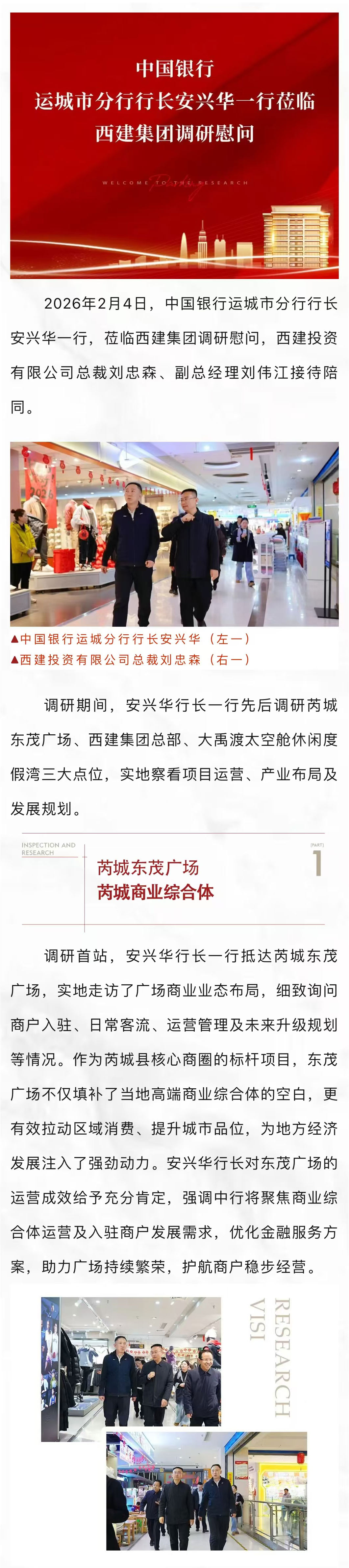 中國銀行運城市分行行長安興華一行蒞臨西建集團調研慰問